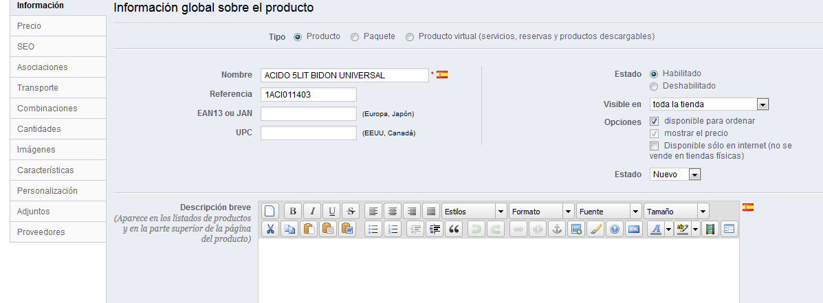 Daviant Posted December 2, 2013 Share Posted December 2, 2013 Saludos; Bueno, tengo una lista de productos en la base de datos y al entrar al Back office para modificar precios, me doy cuenta de que no me funcionan las pestañas de los productos. Al dar en el boton volver a la lista, algunas se recuperan, pero otras no. Por ejemplo la pestaña de precios aparece en blanco, y la de imagenes funciona a medias, no aparece la carga para archivos. Tengo una prueba en un hosting y la definitiva en otro hosting y en los dos me ocurre lo mismo. Alguna idea del problema ? Muchas gracias Prestashop 1.5.6.1 Tema por defecto modificado. Tienda de prueba Link to comment Share on other sites More sharing options...