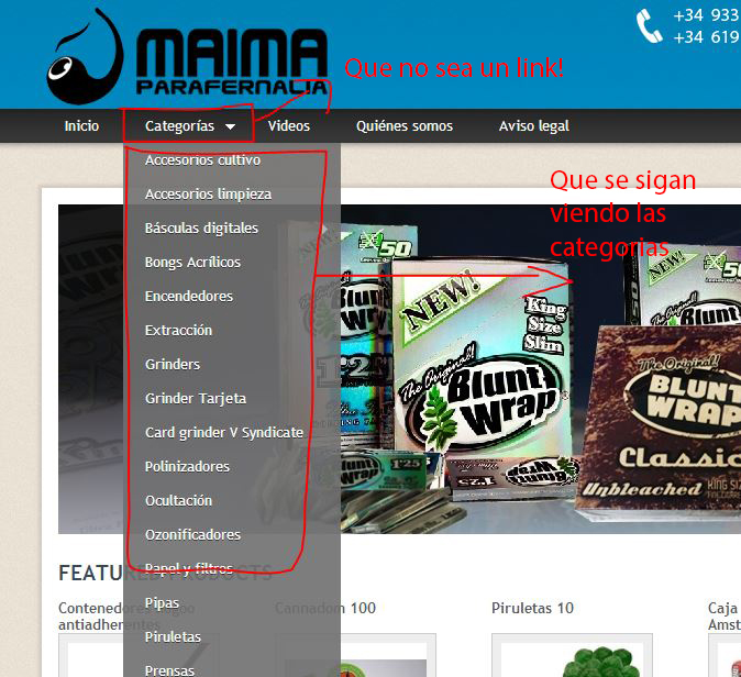 Buenas tardes, me gustaría, si alguien pudiera, que me explicaran cómo hacer para que el link p.ej. "categorías" de mi top-menu horizontal, no linkara a ningún sitio, pero se siguiera viendo la lista de categorías. Dejo una captura explicativa