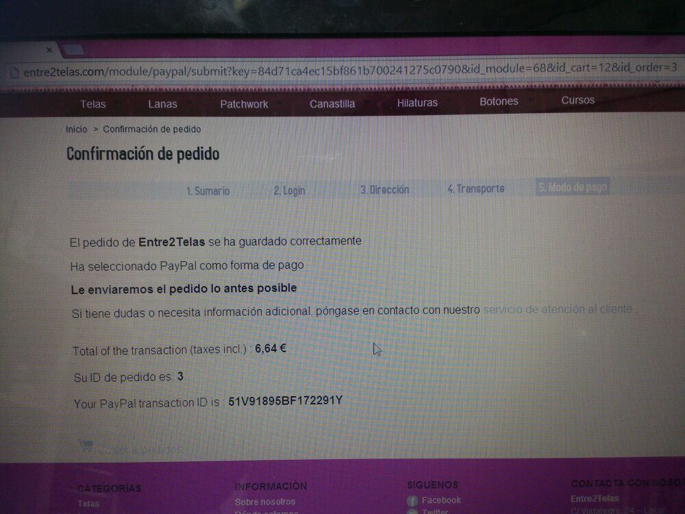 Hoswedaje Posted December 12, 2013 Share Posted December 12, 2013 Hi, Prestashop Version: 1.5.6.1 Paypal Version: 3.6.1 www.entre2telas . com Thanks! Link to comment Share on other sites More sharing options...