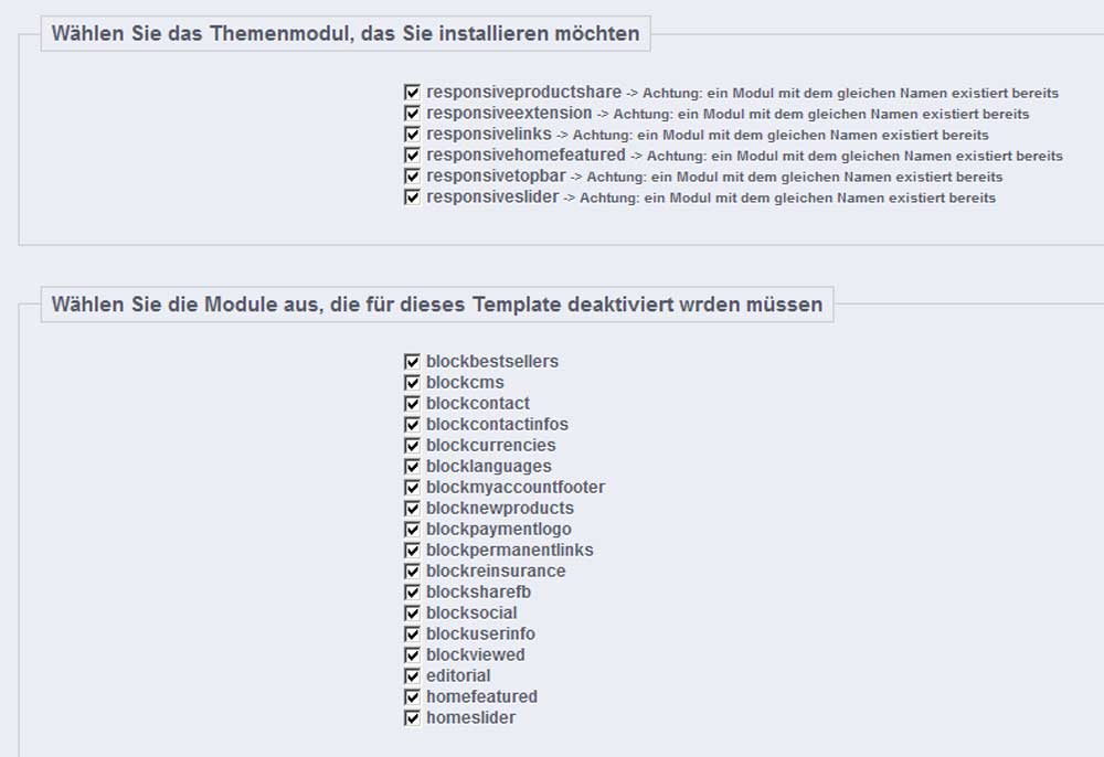 LukeStore Posted December 8, 2013 Author Share Posted December 8, 2013 Welche Module müssen den deaktiviert werden? Habe alle Module (6) vom Design installiert. Aber naja, sieht nicht so aus wie es aussehen sollte :S Link to comment Share on other sites More sharing options...