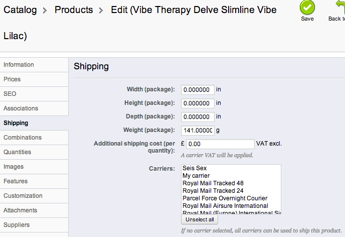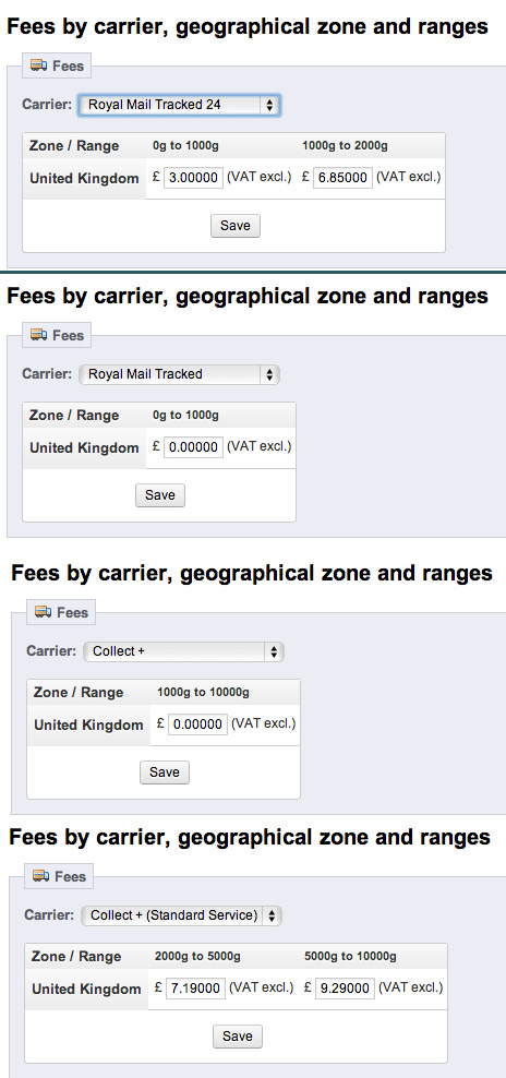 silverpi Posted December 9, 2013 Share Posted December 9, 2013 Hola a todos, Tengo un problemilla con mi web y es que tengo puestos los pesos en gramos para cada producto. Y después tengo los costes de envío calculados por peso. Sin embargo a la hora de hacer el pedido, no me muestra los precios que corresponden. Os paso un pantallazo con un ejemplo de pedido a ver si alguien me puede ayudar. 1. Adjunto imagen de la configuración del producto que tengo metido en el carrito, con un peso de 147 g 2. Adjunto imagen de los rangos de pesos por transportista que tengo configurados. 3. Adjunto imagen de los precios de esos rangos de pesos según transportista. 4. Adjunto lo que sale en la web cuando se realiza el pedido del producto de la primera imagen. Si alguien le ha pasado algo parecido y sabe la solución se lo agradecería, muchas gracias. Link to comment Share on other sites More sharing options...