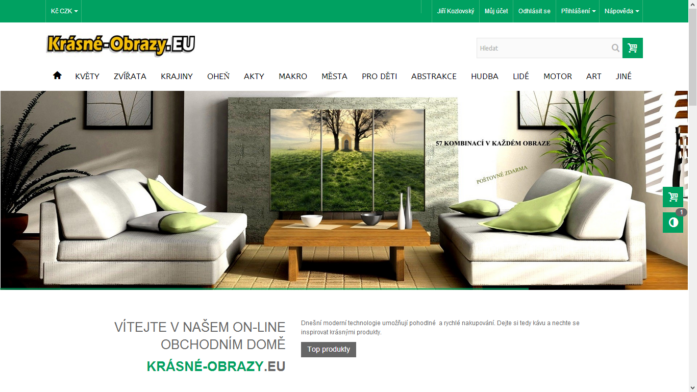 </h1></div></div><div class="span6"><div style="padding: 3em 0 2em 0;"><p><span style="font-family: arial,helvetica,sans-serif;">Dnešní moderní technologie umožňují pohodlné  a rychlé nakupování. Dejte si tedy kávu a nechte se inspirovat krásnými produkty.</span></p> <span style="font-family: arial,helvetica,sans-serif;"><a class="button" href="http://krasne-obrazy.eu/36-top">Top produkty</a></span></div></div></div><p> </p></div> </aside><div class="col4-set banner_block mar_b2" id="banner_3"><div class="col-1 text-center"> <a href="http://krasne-obrazy.eu/307-kvety" target="_self" title="Květy"> <img class=" hover_effect " src="/upload/stbanner/f72be3cd521ac96cd27f7d739ffbc496.jpg" alt="Květy"> </a></div><div class="col-2 text-center"> <a href="http://krasne-obrazy.eu/308-zvirata" target="_self" title="Zvířata"> <img class=" hover_effect " src="/upload/stbanner/9b9abea0d3ad001e9e5166d3414ac32c.jpg" alt="Zvířata"> </a></div><div class="col-3 text-center"> <a href="http://krasne-obrazy.eu/309-krajiny" target="_self" title="Krajiny"> <img class=" hover_effect " src="/upload/stbanner/4ed92964716c2739c4fbc6b3075cb4a7.jpg" alt="Krajiny"> </a></div><div class="col-4 text-center"> <a href="http://krasne-obrazy.eu/310-ohen" target="_self" title="Oheň"> <img class=" hover_effect " src="/upload/stbanner/30c4ec3110cc7eb9a3298f5d437fb70b.jpg" alt="Oheň"> </a></div></div><div class="col4-set banner_block mar_b2" id="banner_4"><div class="col-1 text-center"> <a href="http://krasne-obrazy.eu/311-akty" target="_self" title="Akty"> <img class=" hover_effect " src="/upload/stbanner/c05e93d0f740ec95519072fec77208fe.jpg" alt="Akty"> </a></div><div class="col-2 text-center"> <a href="http://krasne-obrazy.eu/312-makro" target="_self" title="Makro"> <img class=" hover_effect " src="/upload/stbanner/b4855152ea37a5d9c9ad2ec85689e88c.jpg" alt="Makro"> </a></div><div class="col-3 text-center"> <a href="http://krasne-obrazy.eu/313-mesta" target="_self" title="Města"> <img class=" hover_effect " src="/upload/stbanner/e3aa21afecd2d5b28ddfc56ecbfc5103.jpg" alt="Města"> </a></div><div class="col-4 text-center"> <a href="http://krasne-obrazy.eu/314-pro-deti" target="_self" title="Pro děti"> <img class=" hover_effect " src="/upload/stbanner/ba3c951c1ea714decd22456942a2e079.jpg" alt="Pro děti"> </a></div></div><div class="col4-set banner_block mar_b2" id="banner_5"><div class="col-1 text-center"> <a href="http://krasne-obrazy.eu/315-abstrakce" target="_self" title="Abstrakce"> <img class=" hover_effect " src="/upload/stbanner/7cd6bc383339a42a3c148cde07166967.jpg" alt="Abstrakce"> </a></div><div class="col-2 text-center"> <a href="http://krasne-obrazy.eu/316-hudba" target="_self" title="Hudba"> <img class=" hover_effect " src="/upload/stbanner/95958f5c5168be607383d2ad9ffcde3f.jpg" alt="Hudba"> </a></div><div class="col-3 text-center"> <a href="http://krasne-obrazy.eu/317-lide" target="_self" title="Lidé"> <img class=" hover_effect " src="/upload/stbanner/4c9bb65888063edd37dbfc5a34f0a581.jpg" alt="Lidé"> </a></div><div class="col-4 text-center"> <a href="http://krasne-obrazy.eu/318-motoristicke" target="_self" title="Motoristické"> <img class=" hover_effect " src="/upload/stbanner/6e5f81a07360a5a90ebf87319252c5d1.jpg" alt="Motoristické"> </a></div></div><div class="col4-set banner_block mar_b2" id="banner_6"><div class="col-1 text-center"> <a href="http://krasne-obrazy.eu/319-pop-art" target="_self" title="Pop art"> <img class=" hover_effect " src="/upload/stbanner/dd1a4e89780ac36e8f26ee91e44f3949.jpg" alt="Pop art"> </a></div><div class="col-2 text-center"> <a href="http://krasne-obrazy.eu/320-jine" target="_self" title="Jiné"> <img class=" hover_effect " src="/upload/stbanner/22d2827913cf0308e908477cc31ef58b.jpg" alt="Jiné"> </a></div><div class="col-3 text-center"> <a href="http://krasne-obrazy.eu/36-top" target="_self" title="Top obrazy"> <img class=" hover_effect " src="/upload/stbanner/0d100985373b65eaf5697c21e1c4853e.jpg" alt="Top obrazy"> </a></div><div class="col-4 text-center"> <a href="http://krasne-obrazy.eu/content/12-tvary-rozmery-a-ceny" target="_self" title="Tvary, rozměry a ceny"> <img class=" hover_effect " src="/upload/stbanner/3ff71e64543de64e5c66286019803934.jpg" alt="Tvary, rozměry a ceny"> </a></div></div><div class="editorial_block" id="editorial_block_center"> <img src="http://krasne-obrazy.eu/modules/editorial/homepage_logo_1.jpg" alt="" width="530" height="228"><div class="rte"><h1>Dámy a pánové, vážení klienti,</h1><p>Otevřeli jsme pro Vás nový on-line obchod www.krasne-obrazy.eu, kde můžete najít širokou nabídku obrazů pro všechny věkové kategorie.</p><p>Snažíme se odlišit od jiných obchodních domů abychom Vás opravdu zaujali a proto nabízíme nulové poštovné, 57 variant v jednom obraze, rezponzívní rozlíšení pro všechny platformy, rychlost komunikace, ceny, výběr kvalitních a poctivých výrobců, veliká nabídka zboží, esteticky a chytře propracované prostředí stránek, rychlý a bezproblémový nákup, možnost porovnávání zboží, ukládání oblíbených položek a další a další výhody. Věřím, že vše zjistíte během Vašeho putování po našem obchodě, oblíbíte si jej a budete se k nám vracet za účelem kvalitního a rychlého nákupu.</p><p>Vybíráme velice pečlivě výrobce a kontrolujeme jejich výrobky a taktéž spolehlivost dodávek, komunikaci a další související aspekty, které v důsledku vedou k perfektní distribuci a konečně pak k Vaši spokojenosti. Nepodcenili jsme ani komunikaci s Vámi, můžete nám volat kdykoliv na naši linku podpory, kde se Vám naši operátoři budou věnovat.</p><p>Zaměřujeme se na mnoho druhů zboží a i v našem novém obchodě krasne-obrazy.eu budeme postupně produkty rozšiřovat, nyní v počáteční fázi  nabízíme 52 839 obrazů včetně modifikací. Postup výběru obrazu je naprosto jednoduchý, stačí si zvolit hlavní