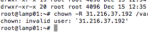 franzonal Posted December 17, 2013 Author Share Posted December 17, 2013 chown -R 31.216.37.192 /var/www/byggbutik returns "invalid user" Link to comment Share on other sites More sharing options...