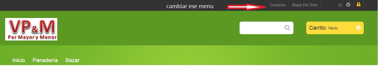 Paula Martinez Posted December 16, 2013 Share Posted December 16, 2013 Hola a todos, Por favor su ayuda con mi tienda, como proyecto de titulacion tengo que implementar una tienda virtual y me toco prestashop, necesito cambiar un titulo pero no se donde puedo hacerlo desde el administrador, espero que me puedan indicar donde y como hacerlo. En la imagen debajo podran ver que menu deseo cambiar. menu_a_cambiar.jpg Gracias Hola, Me llamo Raul Martinez, ¿Se puede ver la demo de la plantilla? Parece el modulo de bloque de enlaces permanentes, Mira ver en el fichero: /themes/plantilla/modules/blockpermanentlinks/blockpermanentlinks-header.tpl Prueba quitar los enlaces ahí. O si solo quieres cambiar la traduccion del texto, supongo que desde la pestaña Localización -> Traducción de los mensajes -> Modificar Traducciones -> Traducciones de los modulos instalados puedes hacerlo.. Link to comment Share on other sites More sharing options...