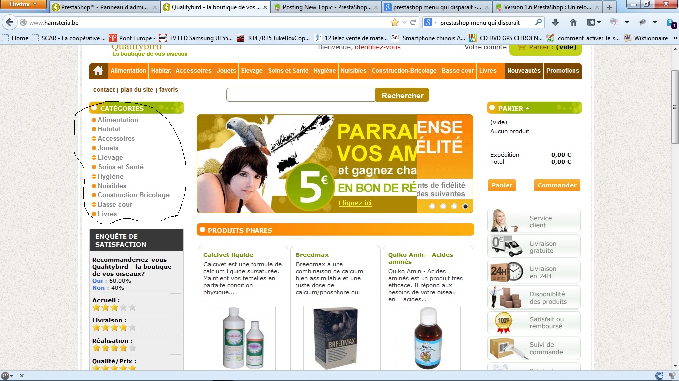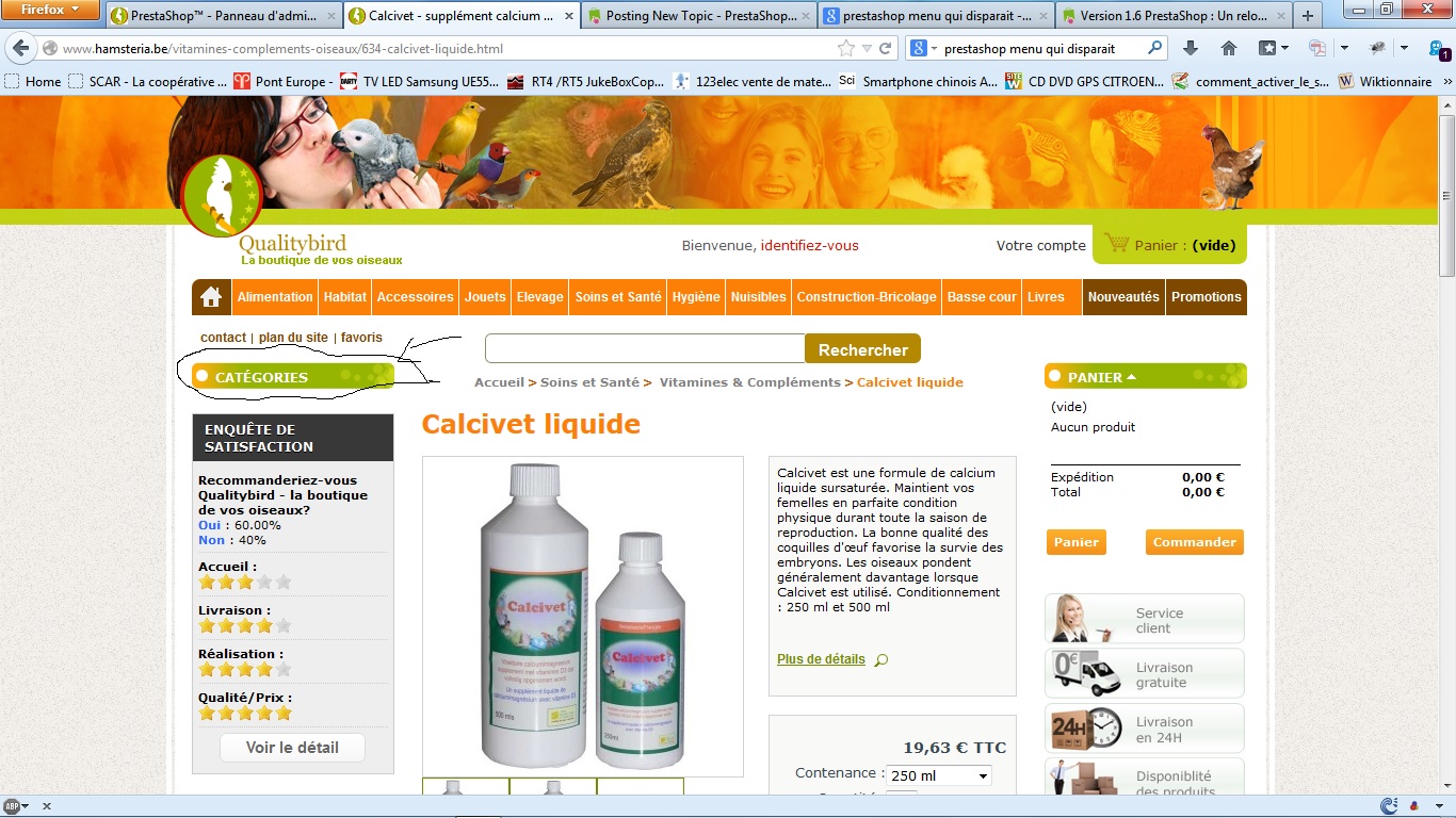 mmomobis Posted December 17, 2013 Share Posted December 17, 2013 (edited) Bonjour, Quand je suis sur ma page d'accueil mon menu apparait sans problème (voir screen), dès que je vais dans un produit, mon menu disparait sans raison (voir second screen), le mode Debug ne donne rien, j'avoue ne pas comprendre, le titre du bloc est bien là, mais vidé de son contenu, si une personne à une piste ? Je suis sous Prestashop 1.4.11 merci d'avance. PS : Même résultat avec le thème par défaut !! Edited December 17, 2013 by mmomobis (see edit history) Link to comment Share on other sites More sharing options...