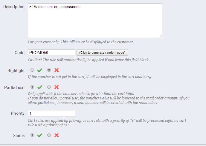 ggupta77 Posted December 18, 2013 Share Posted December 18, 2013 I have applied a cart rule of 50% discount for a specific category. The coupon is working fine but when I am adding products from other categories too and trying to apply the coupon, it is applying coupon on whole cart and not only on the specific category product. I am using prestashop 1.5.4.1 version Link to comment Share on other sites More sharing options...