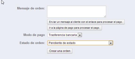 al momento de crear el pedido desde el backoffice , escojo este estado (suponiendo que no enviará mail) y ahora tengo dos métodos de pago.. redsys y transferencia bancaria...