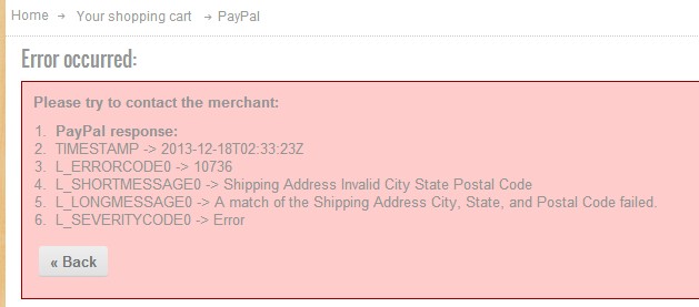 All errors involve Shipping details. I checked the our logs and found several samples where buyer submit wrong data, causing the error Messages.
