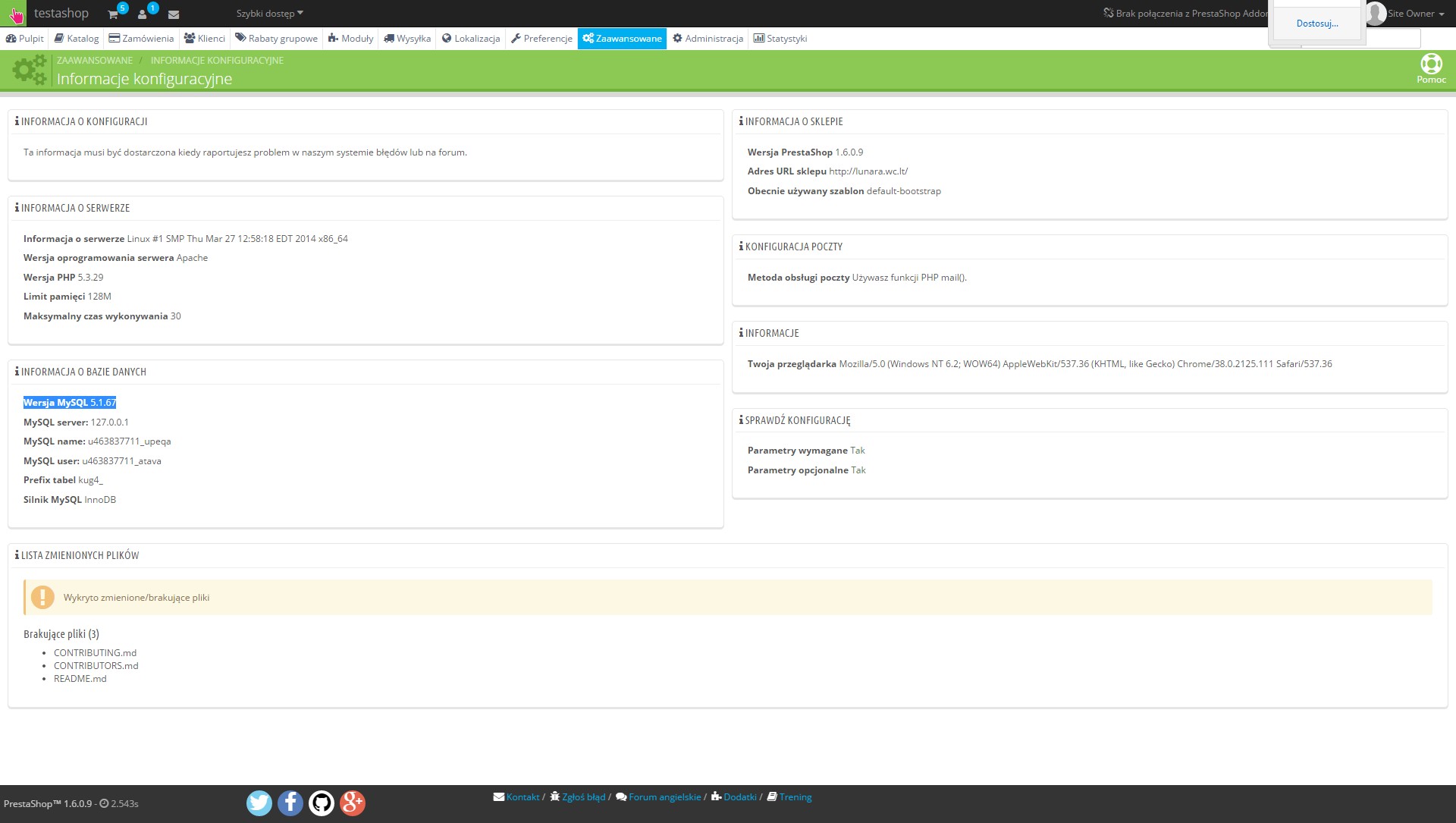 Jak mogę sprawdzić co mam naprawić w konfiguracji sklepu. wszystko było OK. Dziś zaglądam i jest czerwono:
