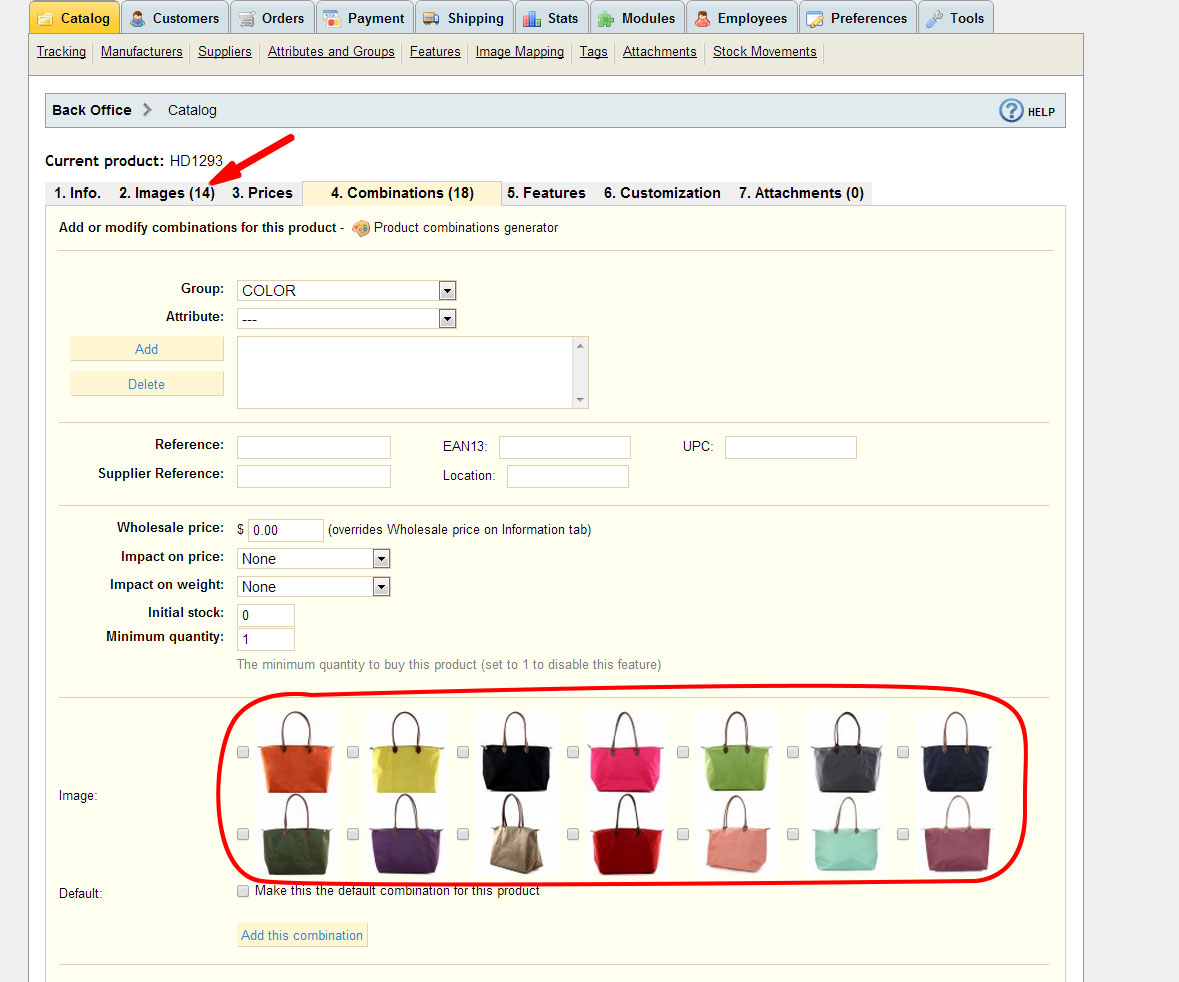 BobPour Posted December 20, 2013 Share Posted December 20, 2013 Hello, I am running Prestashop 1.4.70 I have few products with more than 14 combinations and each combination has a different image. When i add more than 14 images to one product; I can not see the images after the 14th image in the back office but I do see the images in my shop! Same problem exist on the combination page (back office), only 14 thumbnails shows up there so I cannot assign a different Attributes to my images (after 14) I attach a picture of the back office showing only 14 products (two rows of thumbnails in combination page) As you can see under "2. Images" Tab it shows 14 but I actually uploaded 16 images (which I can see them in the shop) Is 14 limit the number of the image per product or I am missing something? Thanks a Ton Link to comment Share on other sites More sharing options...