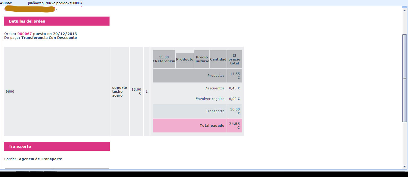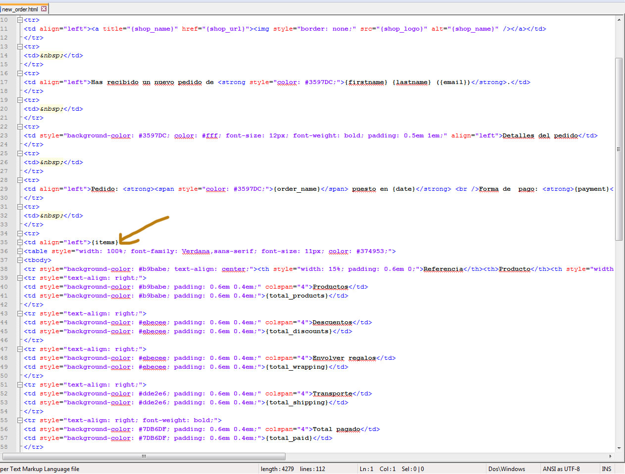 victorgomez36 Posted December 20, 2013 Author Share Posted December 20, 2013 Muchas Gracias Josraso, ya lo he encontrado. de todos modos observo otro problema. los artículos me están saliendo antes de la tabla de descripción y bastante descuadrados.observo que hay una linea en el codigo que pone item y que esta antes de la descripcion de la tabal, lo que pasa es que no se de programacion y no se donde ponerla para que se cuadre todo. Adjunto una foto de como me llegan los correos. y otra con el código que aparece en el fichero new_order.html Link to comment Share on other sites More sharing options...