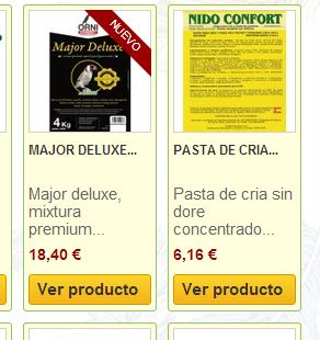 nadie Posted December 22, 2013 Share Posted December 22, 2013 Para el listado de productos, veo que la tienes oculta en tu css. Veo que tienes aqui: http://www.todoave.es/themes/Pruebas/css/product_list.css esto: #product_list li span.availability { display: none; color: #488C40; } si le quitas el display: none; veras la etiqueta. En el fichero: /themes/su-plantilla/product-list.tpl tendras algo como esto: {if isset($product.available_for_order) && $product.available_for_order && !isset($restricted_country_mode)}<span class="availability">{if ($product.allow_oosp || $product.quantity > 0)}{l s='Available'}{elseif (isset($product.quantity_all_versions) && $product.quantity_all_versions > 0)}{l s='Product available with different options'}{else}<span class="warning_inline">{l s='Out of stock'}</span>{/if}</span>{/if} ponlo debajo de: {if isset($product.new) && $product.new == 1}<span class="new">{l s='New'}</span> es decir debajo de <img src="{$link->getImageLink($product.link_rewrite, $product.id_image, 'home_default')|escape:'html'}" alt="{$product.legend|escape:'htmlall':'UTF-8'}" {if isset($homeSize)} width="{$homeSize.width}" height="{$homeSize.height}"{/if} /> {if isset($product.new) && $product.new == 1}<span class="new">{l s='New'}</span>{/if} y luego en el css copiamos el estilo del new, que si te fijas para los productos nuevos en el listado de productos, es este: #product_list li span.new { display: block; position: absolute; top: 15px; right:-30px; padding: 1px 4px; width: 101px; font-size:10px; color: #fff; text-align: center; text-transform: uppercase; -moz-transform: rotate(45deg); -webkit-transform: rotate(45deg); -o-transform:rotate(45deg); -ms-transform: rotate(45deg); background-color: #990000 } Lo copiamos aqui: #product_list li span.availability display: block; position: absolute; top: 15px; right:-30px; padding: 1px 4px; width: 101px; font-size:10px; color: #fff; text-align: center; text-transform: uppercase; -moz-transform: rotate(45deg); -webkit-transform: rotate(45deg); -o-transform:rotate(45deg); -ms-transform: rotate(45deg); background-color: #488C3F Es decir: #product_list li span.availability { display: block; position: absolute; top: 15px; right: -30px; padding: 1px 4px; width: 101px; font-size: 10px; color: #fff; text-align: center; text-transform: uppercase; -moz-transform: rotate(45deg); -webkit-transform: rotate(45deg); -o-transform: rotate(45deg); -ms-transform: rotate(45deg); background-color: #488C3F; } Logicamente tendras que cambiar valores para que no tape la raya del nuevo xD 1 Link to comment Share on other sites More sharing options...