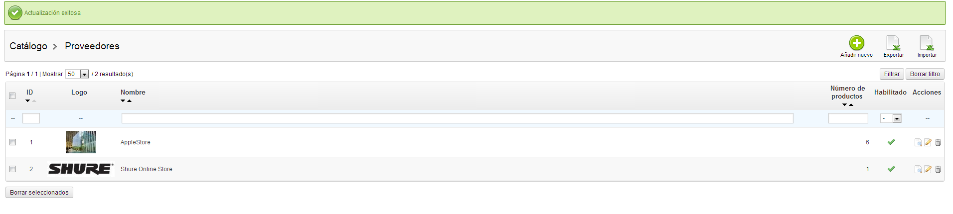 Los proveedores si me crean lo unico que los logos de fabricantes y proveedores no se guardan, yo la cambio o pongo otra imagen como logo , la tienda me pone que se actualizado el logo correctamente pero realmente la imagen no se a subido.