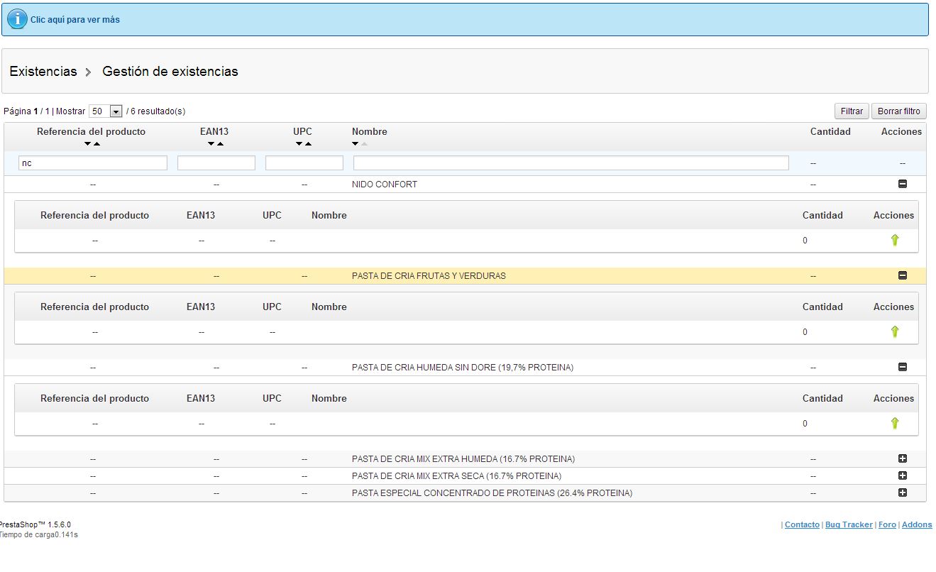 Akthon Posted December 26, 2013 Share Posted December 26, 2013 (edited) Buenas, como ahora para enero empiezo con la tienda he decidido empezar a poner todo el stock que tengo en la web, y cual a sido mi sorpresa que no puedo, todos los articulos que tienen combinacion no puedo poner stock, me dice que articulo no valido o algo asi, me urge solucionarlo, espero que como siempre alguno de vosotros me pueda ayudar. Eso por un lado y por otro y menos importante es que cuando hay un articulo disponible, sale un etiqueta como disponible, cuando eesta sin stock me parece correcto que salga la etiqueta AGOTADO, pero cuando hay stock, podria ponerse para que no aparezca ninguna etiqueta. Por otro lado si lo de mi primer problema no se puede solucionar, he comprobado que actualizando se soluciona el problema del stock, el tema es que me descaonfigura todo el diseño del tema de la tienda, que archivos deberia guardar, para que una vez actualizado pudiese dejar la tienda con el mismo aspecto visual. Dejo dos capuras, para que veais lo que ocurre con lo del stock. Un saludo y felices fiestas. Edited December 30, 2013 by Akthon (see edit history) Link to comment Share on other sites More sharing options...