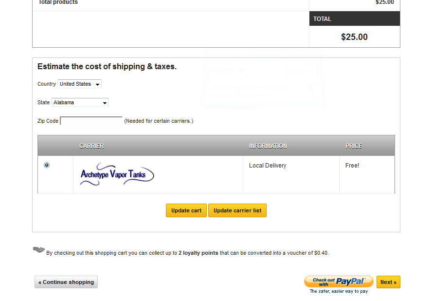 archetypevaportanks Posted January 23, 2014 Share Posted January 23, 2014 Hello, I am having pretty much the same issue, with the no carrier available message as well. I have done a lot that I have found in the forum. like going to the Warehouse tab under the stock tab and selecting carriers, which seemed to work for others. But not for my store. If someone could help me the url I am working on is www.archetypevaportanks.com/store If you could take a look see if you can find a solution. I have gone every which way trying to figure this out. Had it working a couple of weeks ago. Link to comment Share on other sites More sharing options...