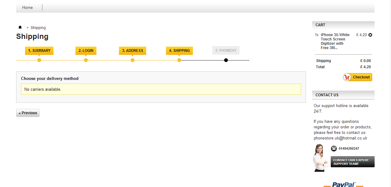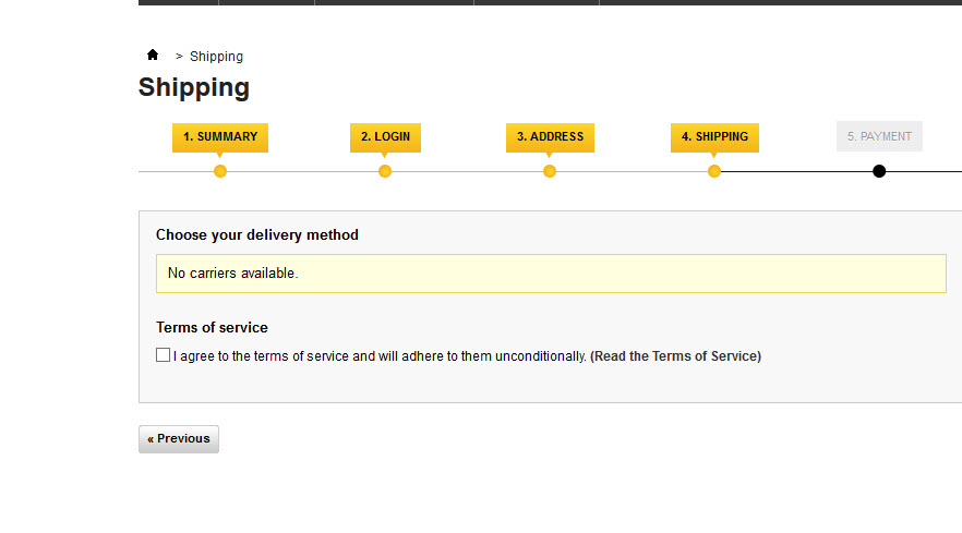 tonisky Posted December 29, 2013 Share Posted December 29, 2013 (edited) Hi, I today spent hours on this issue, read numerous threads and solutions online, however, none of them can help me. My issue: No carriers available during check-out. Things I have done: 1. Create a new carrier, enabled it, set the postage rules; 2. Enabled the zone in Zone's settings; 3. Selected the carrier in Product's Shipping tab. However, it doesn't matter what I did, during check out there is always "No carriers available". I really don't understand why. I am nearly mad, actually. Attached please find the screenshots. I would be very much appreciated if anyone can help me! Tony Edited December 30, 2013 by tonisky (see edit history) Link to comment Share on other sites More sharing options...