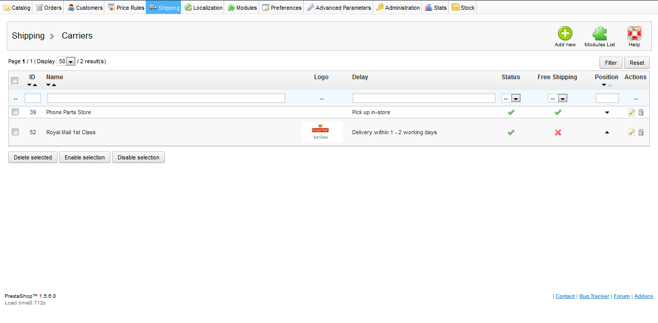 tonisky Posted January 14, 2014 Author Share Posted January 14, 2014 Hi Tony I tried as suggest my the shop stills displaying the message 'No carriers available'. If you can further help, it would be greatlly appreciated. Thanks Antonio Hi Antonio, Just read your comment. Don't know if you fix it yet, but here are my suggestions: 1. Enable the carrier(s) in the product; 2. Enable the carrier(s) in the Carriers under Shipping tab; 3. Enable the carrier(s) in the warehouse under Stock tab; 4. Check if the carrier(s) is being connected to the country or zone. It should work if you follow above steps. Hope it helps. Tony Link to comment Share on other sites More sharing options...