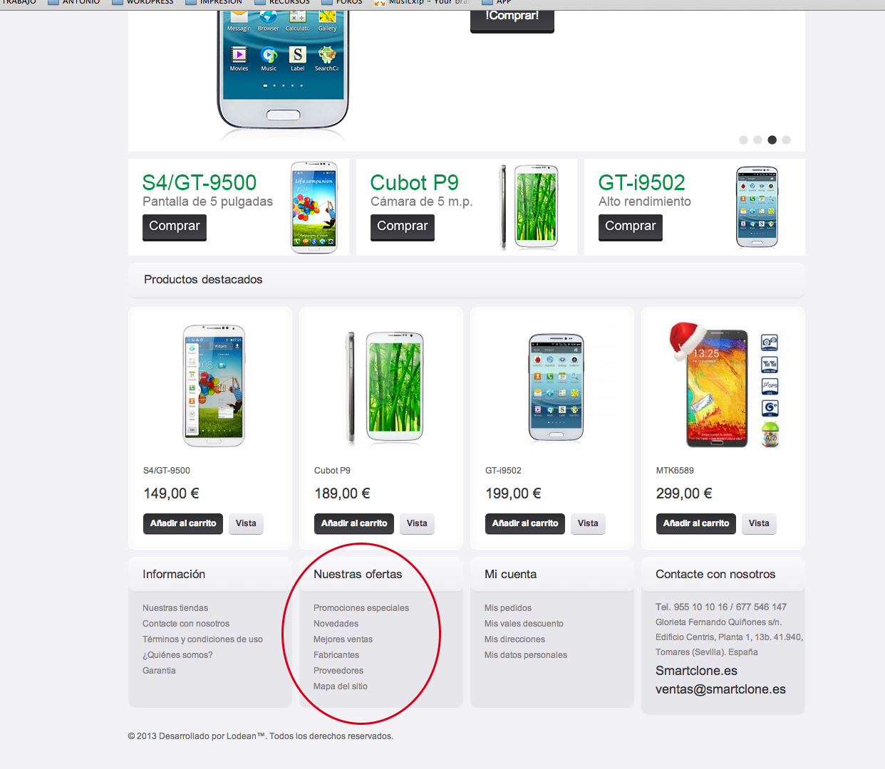 Prestaalc Posted January 1, 2014 Share Posted January 1, 2014 (edited) Hola. Recientemente e modificado una plantilla, de momento todo a ido bien pero el problema es que no consigo encontrar donde modificar unas paginas, en concreto estas: Nuestras ofertas Promociones especiales Novedades Mejores ventas Fabricantes Proveedores Mapa del sitio Adjunto una imagen para que os hagais una idea. Gracias de antemano y feliz año. Mi web: http://smartclone.es/index.php Edited January 2, 2014 by Prestaalc (see edit history) Link to comment Share on other sites More sharing options...