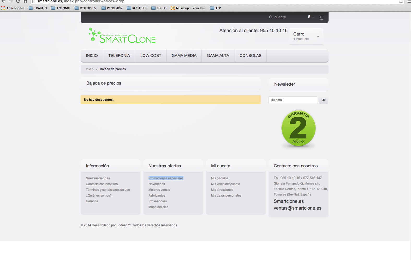 nadie Posted January 1, 2014 Share Posted January 1, 2014 Perdona, pero por donde me comentas ya estuve trasteando, creo que no enfoque bien la pregunta. Mi intencion es saber donde puedo comabiar el contenido de esas paginas. Por ejemplo cuando pico en Promociones especiales se me abre la pagina que adjunto, pero no encuentro donde poder modificar su contenido. Gracias. Promociones especiales, por ejemplo se componen de los productos que usted has creado con descuentos. Puedes crear descuentos para los productos en la ficha de edición del producto, dentro de la zona del precio en la zona "Precio Especificos", o en la pestaña Reglas de precios -> Reglas del catalogo Al hacerlo automáticamente te aparecen los productos en dicha sección. Mejores ventas: Te muestra los productos que mas se han vendido en la tienda. Fabricantes Listado de fabricantes que has creado en la pestaña Catalogo -> Fabricantes Proveedores Listado de proveedores que has creado en la pestaña Catalogo -> Proveedores Mapa del sitio (Corresponde al fichero: /themes/plantilla/sitemap.tpl) Resumen de secciones de la tienda. ----- ¿Que es lo que quieres hacer exactamente? Por supuesto, te en cuenta que los textos generales de esas secciones son Traducciones de Front-Office, excepto los mismos datos se que se imprimen dinamicamente como los productos, fabricantes, proveedores etc.. que se configuran en el panel de la tienda,. Link to comment Share on other sites More sharing options...