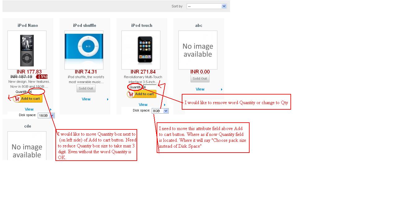 Zen_j1 Posted January 8, 2014 Author Share Posted January 8, 2014 I have tried contacting developer thru link Contact the developer on module page of addon store But I think it is not working even after pressing Send Button msg did not go. So to I have written the same issue at link given below which I think is of developer and hoping to get solution. http://www.prestashop.com/forums/topic/94296-module-quantity-box-and-attributes-in-product-lists/page-2 This module does not have tpl file I have was able to change word Quantiy to Qty: from php file and reduced the size of box with css. BUT I Still need help to move the attribute part above Add to cart button and qty as show in new image in this post if anyone has worked on this module please help. Link to comment Share on other sites More sharing options...