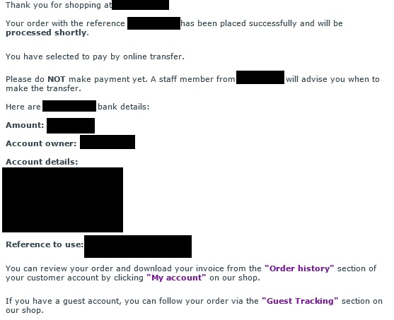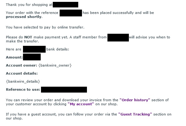 Rebel Tech Posted January 4, 2014 Author Share Posted January 4, 2014 Hi Vekia They are as follows: Statuses.jpg is the complete list details is the edit on "pending" It seems that it doesn't pull the details are reverting back from one status to "pending" Here is the html code <!DOCTYPE html PUBLIC "-//W3C//DTD HTML 4.01//EN" "http://www.w3.org/TR/1999/REC-html401-19991224/strict.dtd"> <html> <head> <meta http-equiv="Content-Type" content="text/html; charset=utf-8"> <title>Message from {shop_name}</title> </head> <body> <table style="font-family: Verdana,sans-serif; font-size: 11px; color: #374953; width: 550px;"> <tbody> <tr> <td align="left"><a title="{shop_name}" href="{shop_url}"><img style="border: none;" src="{shop_logo}" alt="{shop_name}" /></a></td> </tr> <tr> <td> </td> </tr> <tr> <td align="left">Hi <strong style="color: {color};">{firstname} {lastname}</strong>,</td> </tr> <tr> <td> </td> </tr> <tr> <td style="background-color: {color}; color: #fff; font-size: 12px; font-weight: bold; padding: 0.5em 1em;" align="left">Your order with the reference {order_name} - Awaiting Confirmation</td> </tr> <tr> <td> </td> </tr> <tr> <td align="left">Thank you for shopping at {shop_name}!<br /><br /> Your order with the reference {order_name} has been placed successfully and will be <strong>processed shortly</strong>.</td> </tr> <tr> <td> </td> </tr> <tr> <td align="left"><p>You have selected to pay by online transfer.</p> <p>Please do <strong>NOT</strong> make payment yet. A staff member from {shop_name} will advise you when to make the transfer.<br /> <br /> Here are {shop_name}'s bank details:<br /><br /> <strong>Amount:</strong> {total_paid}<br /><br /> <strong>Account owner:</strong> {bankwire_owner}<br /><br /> <strong>Account details:</strong><br /><br />{bankwire_details}<br /><br /> <strong>Reference to use:</strong> {lastname}/{order_name}</p></td> </tr> <tr> <td> </td> </tr> <tr> <td align="left">You can review your order and download your invoice from the <a style="color: {color}; font-weight: bold; text-decoration: none;" href="{history_url}">"Order history"</a> section of your customer account by clicking <a style="color: {color}; font-weight: bold; text-decoration: none;" href="{my_account_url}">"My account"</a> on our shop.<br /><br /></td> </tr> <tr> <td align="left">If you have a guest account, you can follow your order via the <a style="color: {color}; font-weight: bold; text-decoration: none;" href="{guest_tracking_url}">"Guest Tracking"</a> section on our shop.</td> </tr> <tr> <td> </td> </tr> <tr> <td style="font-size: 10px; border-top: 1px solid #D9DADE;" align="center"><a style="color: {color}; font-weight: bold; text-decoration: none;" href="{shop_url}">{shop_name}</a> powered by pure awesomeness!™</td> </tr> </tbody> </table> </body> </html> Link to comment Share on other sites More sharing options...