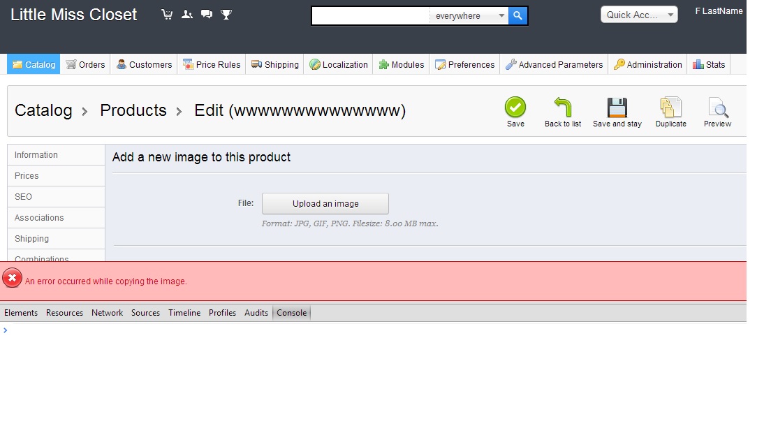 kianwan87 Posted January 4, 2014 Share Posted January 4, 2014 hi all, i am unable to upload any images in my prestashop backend. i uploaded the image and nothing move. when i click save after a while, a red undefined error come out at the bottom of the page. when i went back to check this is what i see (Capture.jpg). I am using the default template and did not change any files. please help ? Regards anyway my shop URL is http://littlemisscloset.com cheers Link to comment Share on other sites More sharing options...