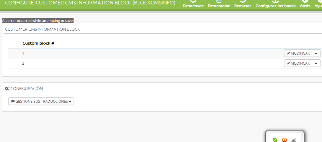 alexissalinas Posted January 7, 2014 Share Posted January 7, 2014 Bueno primero que nada hola ..mi tema es que estoy editando la plantilla que trae el 1.6.0.2 pero me da ese error en el modulo CUSTOMER CMS INFORMATION BLOCK alguien me puede ayudar por que me aparece eso An error occurred while attempting to save. ... http://prntscr.com/2h7lt6 Link to comment Share on other sites More sharing options...