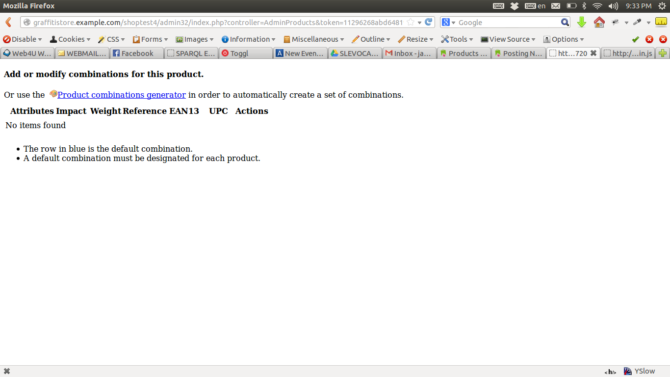 jan.pesek Posted January 7, 2014 Share Posted January 7, 2014 Hi, I have a problem with displaying combinations tab in product details in back office of Presta Shop 1.5.6.0 (recently upgraded from 1.3), seems to have some sort of javascript error (see details below). Description of the problem: when I go to product details, I can view/edit all tabs except "Combinations" tab - when I click Combinations, I get stuck either with blank grey page or (more often) with the loading animation (spinning arrows forever). It's not possible to click on other section to go back after that, you have to reload the page to display e.g. "Information" tab again. It happens on multiple browsers and multiple computers/operation systems. What I know about the problem so far: - it does happen even when adding new product (it does display info that you have to save product first correctly though, after you save product with only it's name filled, you immediately cannot acces the combinations tab) - page is loaded via ajax correctly - request to "http://mysite.example.com/shoptest4/admin32/index.php?controller=AdminProducts&token=11296268abd6481986d2edc0c3acad1e&id_product=761&action=Combinations&updateproduct&ajax=1&rand=1389126637902" returns 200 OK, and if I put this addres into the browser manually, it seems to work correctly: - FireBug reports following bug when opening the product detail page: SyntaxError: syntax errorhttp://mysite.example.com/shoptest4/js/jquery/jquery-1.7.2.min.jsLine 2 The piece of code it displays along with the error is "attrs[] = new Array(0, ..." - Apache adds into the error log following message everytime I visit product detail page: [Tue Jan 07 21:37:21 2014] [debug] mod_deflate.c(615): [client 127.0.0.1] Zlib: Compressed 39614 to 10768 : URL /shoptest4/admin32/index.php, referer: http://mysite.example.com/shoptest4/admin32/index.php?controller=AdminProducts&id_product=761&updateproduct&token=11296268abd6481986d2edc0c3acad1e Not sure if this is related. - It has the same behaviour both in online version at my hosting and on my localhost - I haven't found any other errors - it does not display anything in the browser (I have debug mode set to true), and in /shoptest4/log there is nothing (nothing unusual in Advanced parameters -> Log either) I've tried upgrading to jQuery 1.10.2, but it didn't help. Then I tried to copy & replace complete /js folder in shop root from clean install, but it didn't help either, I also tried to copy whole /admin folder from clean install, but that didn't help either. I tried to summarize as much information about the problem as possible, if there is something else, just ask and I'll add requested information asap. Not really sure what should I try next, so I'll be grateful for any suggestions about what may be causing the problems/what should I do to fix it. Thanks, Jan Link to comment Share on other sites More sharing options...
