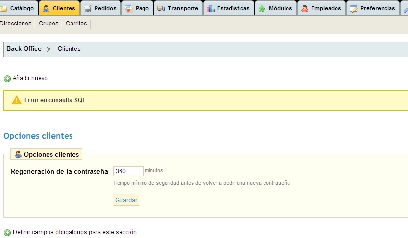 nadie Posted January 8, 2014 Share Posted January 8, 2014 Si activas el reporte de errores: http://www.prestashop.com/forums/topic/232474-%C2%BFqu%C3%A9-hacer-cuando-se-queda-la-pantalla-en-blanco-en-prestashop/ te sale mas información? ¿Es una instalación limpia, una actualización, una migración? ¿Que version de Prestashop usas? Link to comment Share on other sites More sharing options...