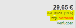 Als ersten Schritt würde ich gerne unter jeden Preis in der Produkt Liste und auf den Produkt Detail Seiten den Passus über MwST und zzgl. Versandkosten mit Link einbauen.