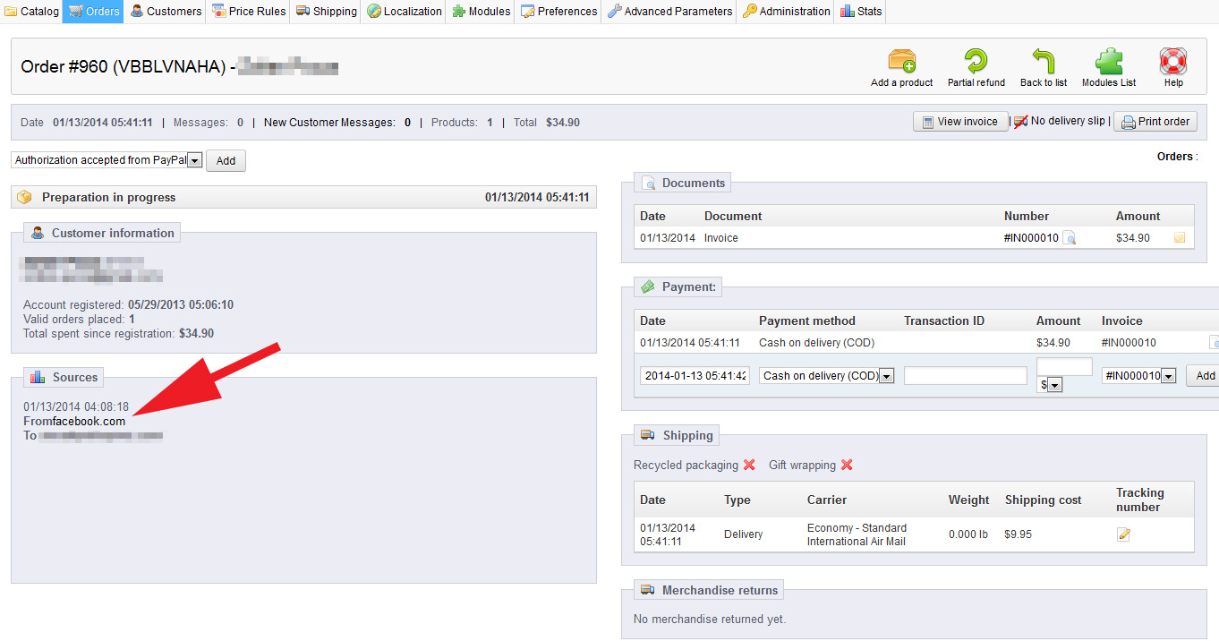 neu Posted January 13, 2014 Share Posted January 13, 2014 (edited) Hey guys and girls We're close to finish launching our new webstore, but there's still one issue I couldn't fix yet. It's not a showstopper, but since it'd provide valuable information on the long run I'd like to get it fixed. When there is an order source is being indicated on the order page. However, the srouce indicated "facebook.com" to me no matter what. I tried to sign out, I placed an order from another computer with not logging in to facebook etc. I simply couldn't get around it... Does anyone have similar problems? Maybe even a solution? I couldn't find anything by googleing it... Thank you in advance! Greetings, neu ps: It's Presta 1.5.4.1 Edited January 13, 2014 by neu (see edit history) Link to comment Share on other sites More sharing options...