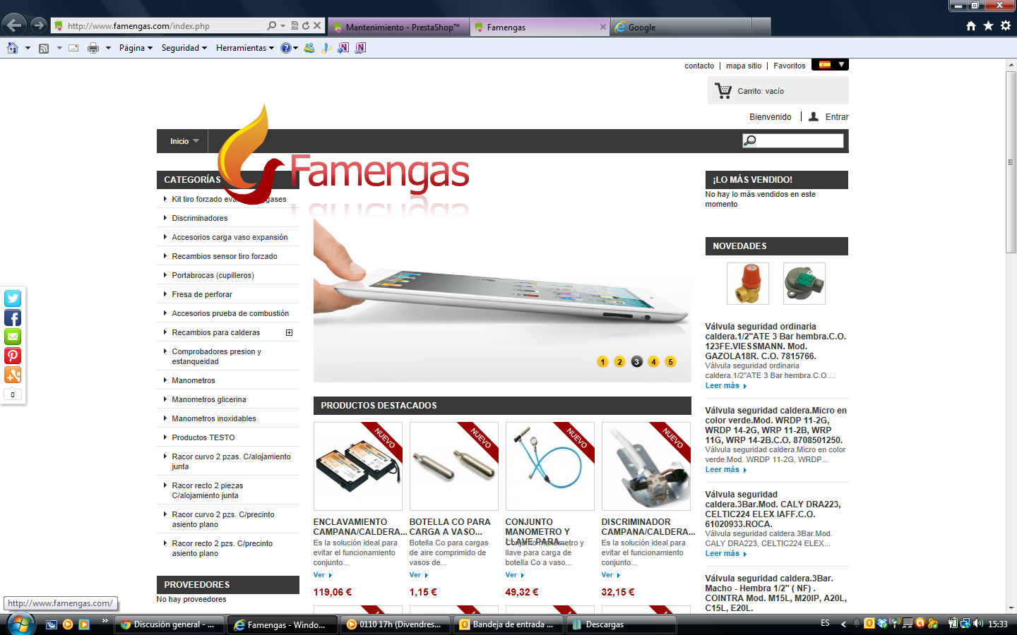 nadie Posted January 13, 2014 Share Posted January 13, 2014 Como dice Jesa, estoy viendo tu web que aparece en mantenimiento y tu logo es grande, gande: http://www.famengas.com/img/logo.jpg?1389632727 tal como supone jesa. Sube el logo un poco mas pequeño desde Preferencias -> Temas, y si luego quieres ajustar un poco el tema de la cabecera para que no se tape el logo con el menu horizontal (ya que por defecto para que no se tape, tienes que subirlo a un tamaño limitado), mira este tema: http://www.prestashop.com/forums/topic/288498-solucionado-problema-logo-tienda-en-prestashop-156/?do=findComment&comment=1454352 1 Link to comment Share on other sites More sharing options...