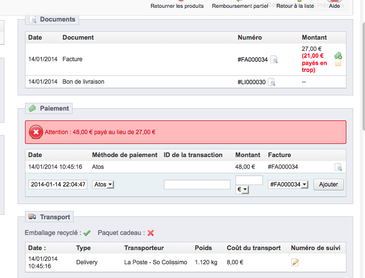 Pierre66 Posted January 14, 2014 Share Posted January 14, 2014 Bonjour à tous J'ai un problème étonnant sur un Prestashop 1.5.2. le montant débité au client est différent de sa commande. Quelqu'un à déjà eu ce problème ? Le module de paiement est Atos acheté sur Add-ons - la banque est Credit du Nord. merci de votre aide je sèche malgré mes recherches. @+ Pierre66 Link to comment Share on other sites More sharing options...