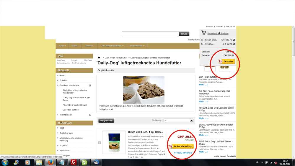 cacib0 Posted January 16, 2014 Author Share Posted January 16, 2014 Zu 1 Das mit der Farbe hat sich wohl erkledigt denn die sieht auf deiner Seite anders aus als auf deinem Bild falls du Sie doch nochmal ändern möchtest... themes/deintheme/css/global.css Zeile 637 - 639 .idTabs .selected { color:#FFFFFF; background:#B09555; repeat-x 0 0 Und für den Button "In den Warenkorb" kannst du die Farben in Zeile 162 background:url(../img/bg_bt.gif) repeat-x 0 0 #f4b61b; ebenfalls in der global.css nach deinen wünschen anpassen. Unter Module> Block Kundenschutz deaktivieren...bzw. Bilder entfernen bearbeiten etc Gruß Magicalname Vielen Dank Block Kundenschutz Texte gefunden, unter " Bild" steht aber "keine Datei ausgewählt". siehe Anhang3 Button Warenkorb: deinen Hinweis hätte ich auch schon gefunden und versucht gehabt, leider aber ohne Erfolg, wie weiter ? ausserdem gibt es ja 2 Buttons, einer beim Produkt und einer beim Warenkorb, beim Warenkorb möchte ich auch den Text ändern. Danke für Deine UNterstützung, cacib0 Link to comment Share on other sites More sharing options...