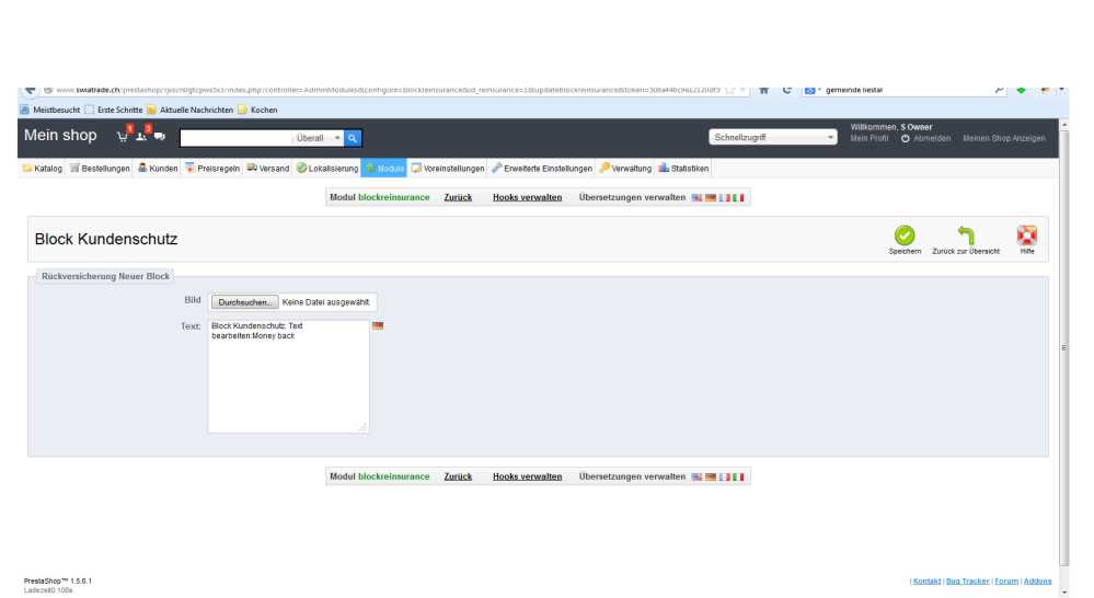 cacib0 Posted January 16, 2014 Author Share Posted January 16, 2014 (edited) Vielen Dank Block Kundenschutz Texte gefunden, unter " Bild" steht aber "keine Datei ausgewählt". siehe Anhang3 Button Warenkorb: deinen Hinweis hätte ich auch schon gefunden und versucht gehabt, leider aber ohne Erfolg, wie weiter ? ausserdem gibt es ja 2 Buttons, einer beim Produkt und einer beim Warenkorb, beim Warenkorb möchte ich auch den Text ändern. Danke für Deine UNterstützung, cacib0 sorry, wie kann ich die Printscreens dafür anhängen ? Edited January 16, 2014 by cacib0 (see edit history) Link to comment Share on other sites More sharing options...
