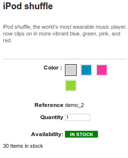 prestashop_newuser Posted January 19, 2014 Share Posted January 19, 2014 Hi, In prestashop I have seen color tabs for product different color attributes. So when we add a new product and want to add a new color attribute we have to use product->attributes and color from the admin site. But in admin panel we just add color name like black, blue, orange, green. But in frontend it shows the color box. For reference I have added the image, there you can see the color box.. So here my question is how it converts color name to color box? An help and suggestions will be really appreciable. Link to comment Share on other sites More sharing options...