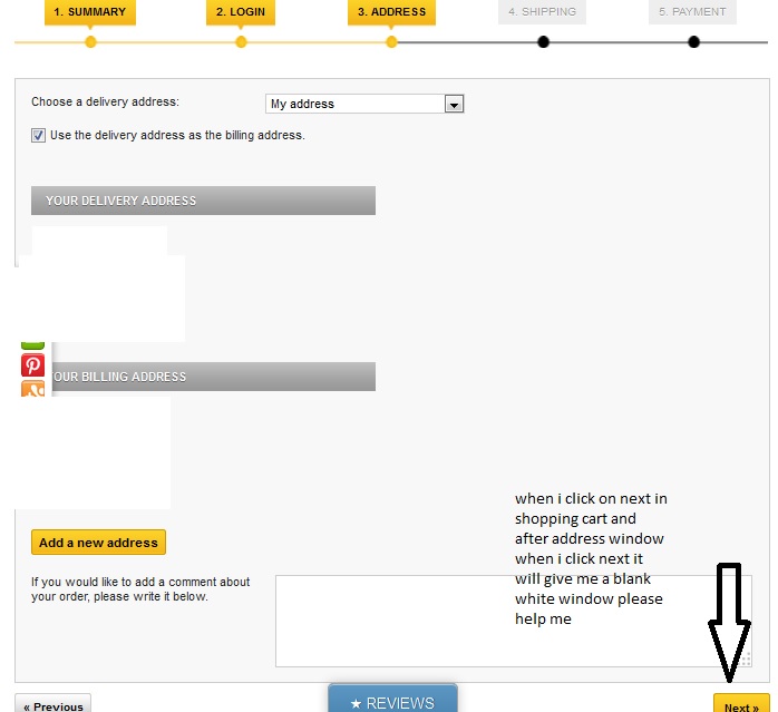 rishipandey Posted January 19, 2014 Share Posted January 19, 2014 please tell me why i receive the white screen when i add any thing in cart and when i click next after putting address ( i mean after fourt option) it will give white screen on fifth screen. I am attaching a image of that please help me. my site is www.sugarpie.in Link to comment Share on other sites More sharing options...
