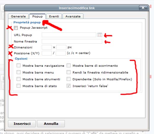 shirani Posted January 19, 2014 Share Posted January 19, 2014 Salve a tutti ho un bel problema con le pagine cms. Praticamente vorrei inserire delle immagini su una pagina, io ho provato a ridimensionarle e farle piccole e linkarle all'immagine così che dopo averci cliccato sopra appare un popup con l'immagine ingrandita. Ma purtroppo riesco solo a far aprire una nuova scheda internet con sopra l'immagine più grande e non riesco a fare il popup come vorrei. Ora io ho provato con la funzione nell'editor della pagina che ti permette di aggiungere un link e puoi selezionare popup con javascript, ma quando salvo mi da un'errore che ho allegato. E ho già attivato l'iframe in preferenze>generale Quindi in poche parole vorrei avere un popup delle immagini che inserisco nella pagina e anche dei popup per far comparire un'altra pagina. Spero che un'esperto possa aiutarmi il prima possibile ! grazie mille a tutti ! Link to comment Share on other sites More sharing options...