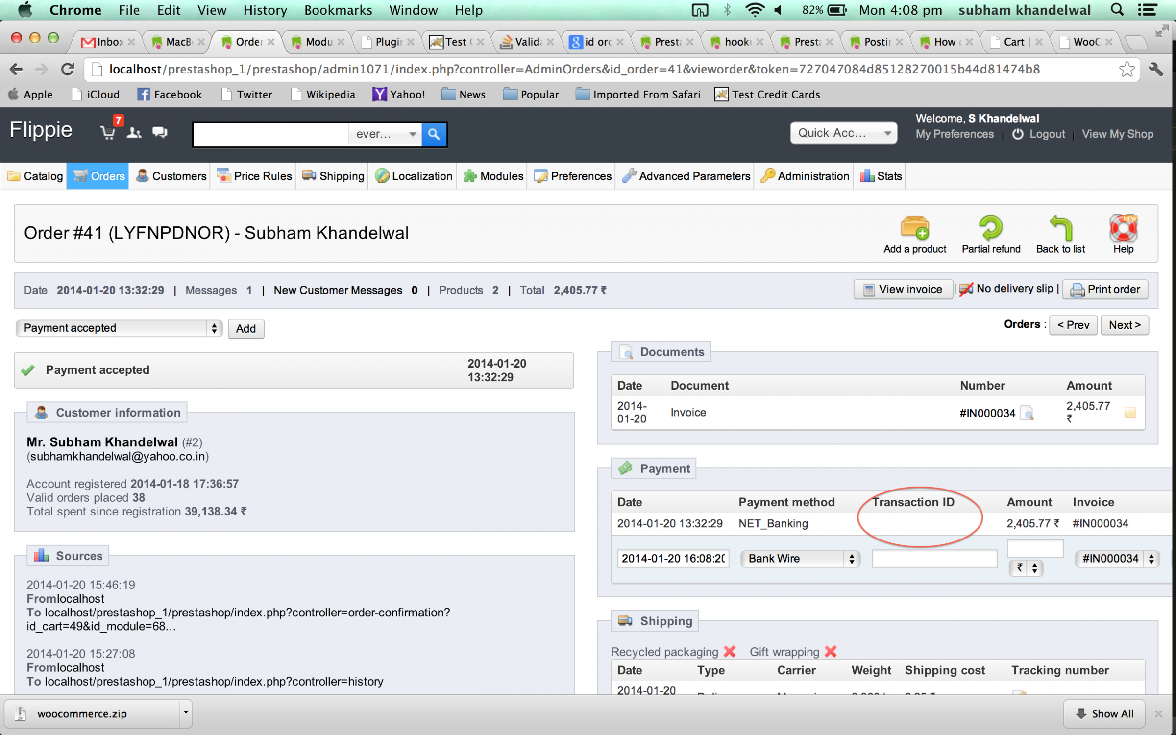 subham93 Posted January 20, 2014 Share Posted January 20, 2014 In backend orders->orders under payment section, transaction id is not updated after validateOrder function is used. How to update transaction id? Link to comment Share on other sites More sharing options...