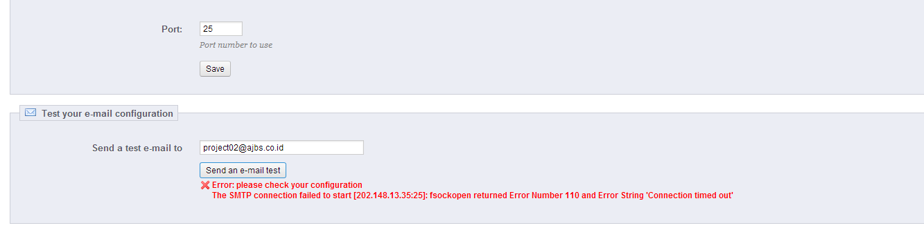 abby_66 Posted January 24, 2014 Share Posted January 24, 2014 Help Me please.... I am Setting for SMTP email configuration costumer service and am test to send mail....but show error like this.... please show me how to fix this,...please Link to comment Share on other sites More sharing options...
