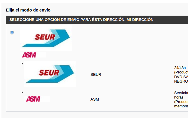 El problema aparece cuando un cliente compra dos productos, los cuales tienen seleccionado un transportista distinto, entonces aparece la suma de los dos, que eso ya está bien, pero aunque no seleccionables me aparecen las imágenes varias veces (como en la imagen que adjunto)