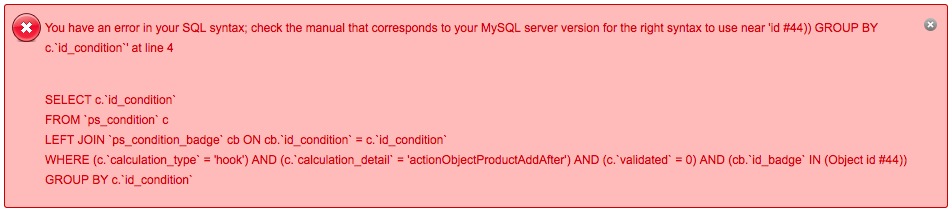 El Patron Posted January 26, 2014 Share Posted January 26, 2014 it would seem that the ps_condition table was not initialized properly on your db. if possible create a another running install and test duplicaton, if works then compare to your non-working mysql ps_condition table. (or if you are not to far along, delete and re-install the shop you are having the problem with) Link to comment Share on other sites More sharing options...