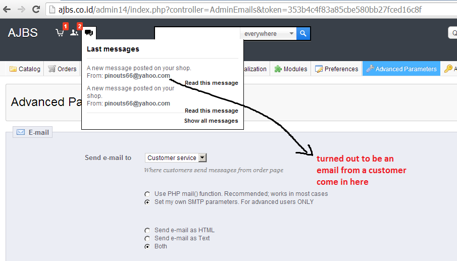 abby_66 Posted January 27, 2014 Share Posted January 27, 2014 to send an email from customer to customer service I navigate to smtp ".... @ ajbs.co.id", but could not and can not be sent, ... and I look at teryata entered in the back office. Link to comment Share on other sites More sharing options...