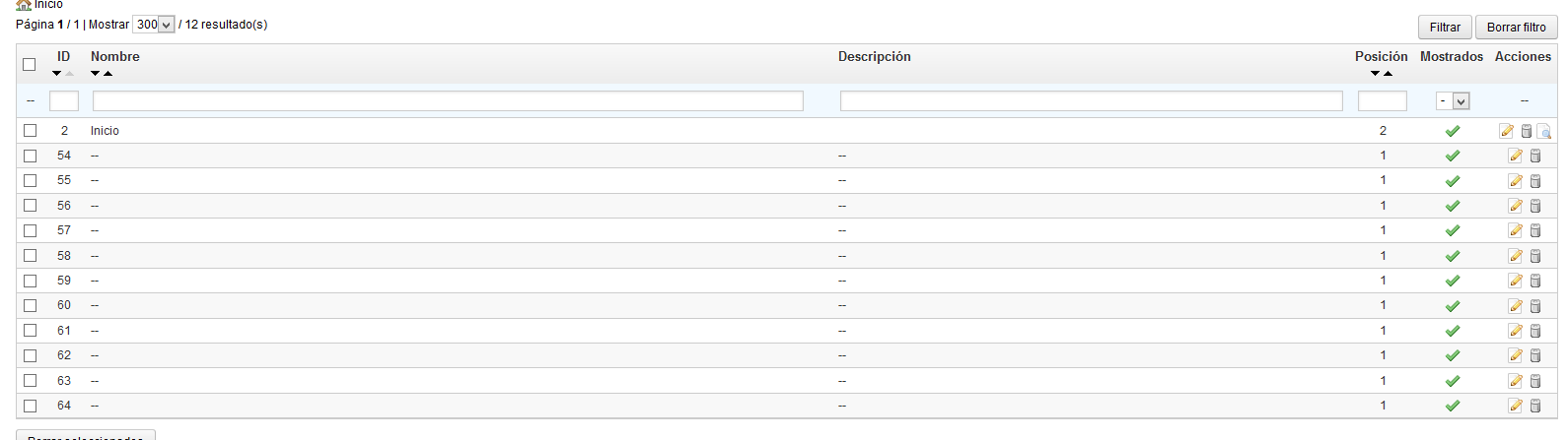 FERMB Posted February 2, 2014 Share Posted February 2, 2014 Activa los errores el archivo config/defines.inc cambiando define('_PS_MODE_DEV_', false); por define('_PS_MODE_DEV_', true); A ver si obtienes algun mensaje de erro que pueda dar alguna pista. Tambien, ya revisaría la base de datos, por ejemplo la tabla ps_categories_lang, a ver si está correcta Link to comment Share on other sites More sharing options...