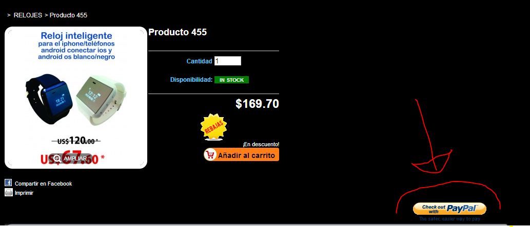 Dirf Posted January 28, 2014 Author Share Posted January 28, 2014 Hola Tengo un problema el botón de pago de paypal se muestra todo el tiempo, y no puede quedar así lo que yo deseo es ocultarlo si el usuario no ha iniciado sesión, pero he mirado en el admin de mi prestashop y no encuentro la manera de ocultarlo. Pido su ayuda por favor! adjunto una imagen. Link to comment Share on other sites More sharing options...
