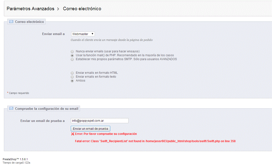 Bolonia Posted January 29, 2014 Share Posted January 29, 2014 (edited) Hola amigos , como estan?bueno vengo nuevamente al foro ya que no puedo dar con este problema , estuve investigando y aparentemente es un problema de DB pero la verdad no encuentro donde puede estar la falla.Migre la tienda de servidor y ahora no envia mails. Si envio un mail por contactos me aparece este error : Fatal error: Class 'Swift_RecipientList' not found in /home/jessr603/public_html/shop/classes/Mail.php on line 131 Y en el BO me aparece el error de la imagen! La tienda es www.poppyspet,com,.arDesde ya agradesco toda la ayuda que me puedan brindar! @ Digo yo que parece como un error de BD por que no puede encontrar la linea , nose me parece a mi Edited January 29, 2014 by Bolonia (see edit history) Link to comment Share on other sites More sharing options...