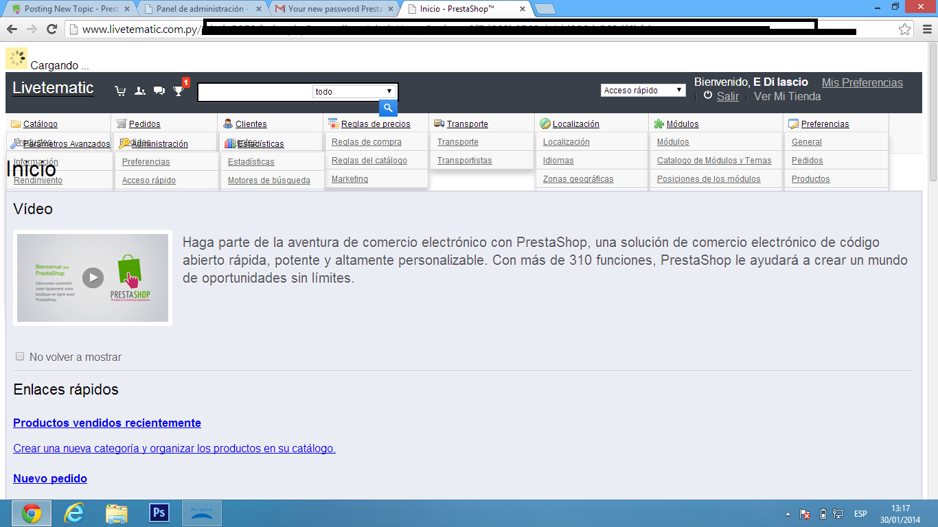 Eduardo Di lascio Posted January 30, 2014 Share Posted January 30, 2014 Hola! Acabo de instalar presta shop en mi tienda, toda la instalacion se realizo correctamente. Pero luego cuando ingreso en el panel me parece todo desordenado y con falta de aspectos visuales, les muestro imagenes para que puedan ver: Que recomendaciones me pueden dar? cual creen que es el origen del problema? La tienda lleva solo 30 minutos en linea Link to comment Share on other sites More sharing options...