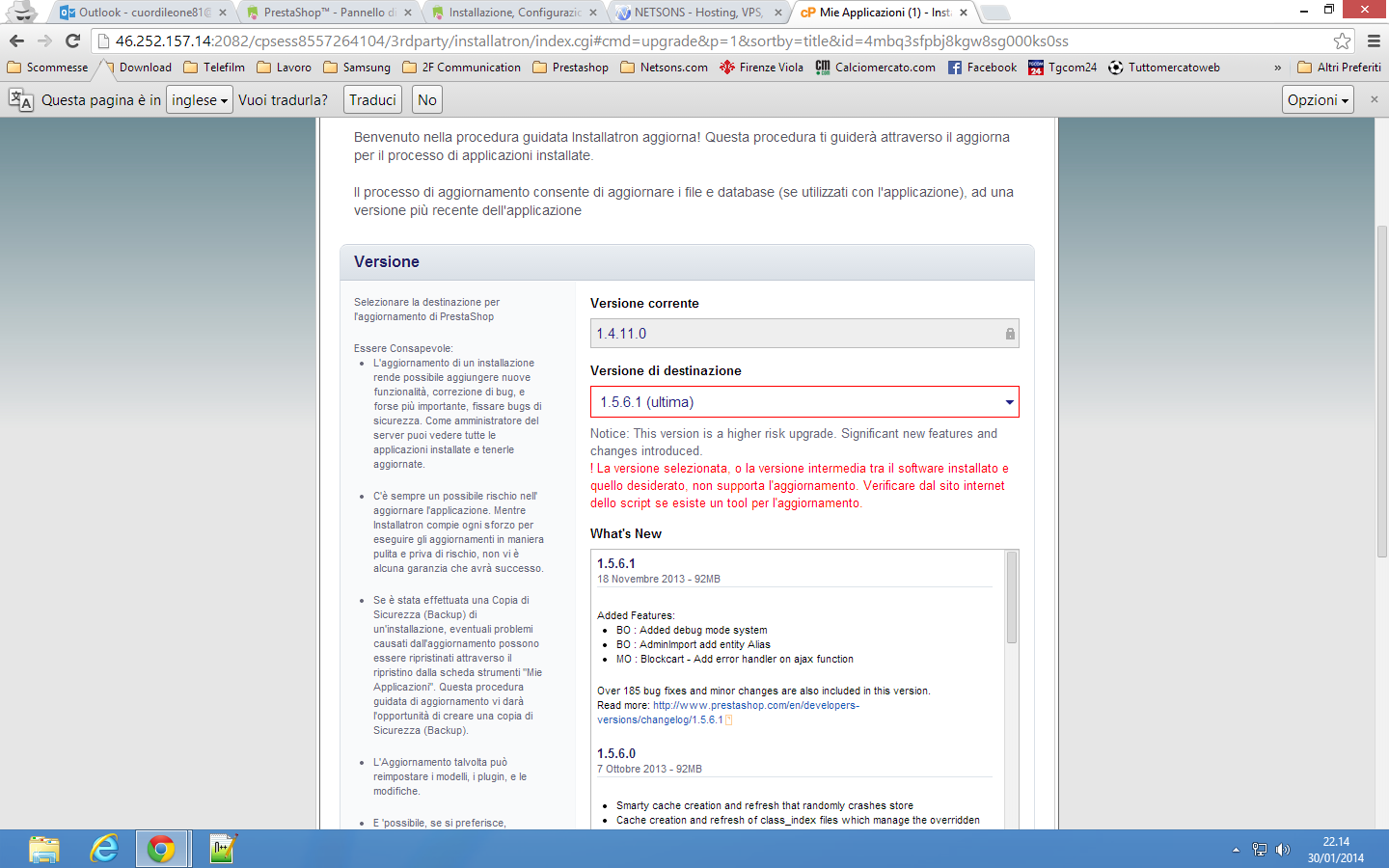 Sito Lab Posted February 4, 2014 Share Posted February 4, 2014 dalla 1 .4 alla 1.5 non è facile aggiornare se sei su altervista altrettanto, inoltre ti consiglio di seguire questa guida se vuoi (da quello che vedo dalla foto) aggiornare dalla 1.4 alla 1.5 http://doc.prestashop.com/display/PS15/Automatic+update Link to comment Share on other sites More sharing options...