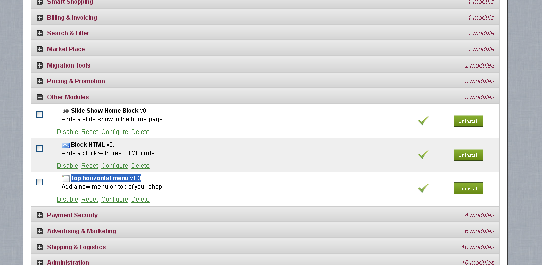 Actually my client was installed this theme. So i would like to uninstall and installed new module for this top menu task. Is there any other module is available in prestashop 1.4 version for this catagory top menu task..If this available please given me some suggestion as well..