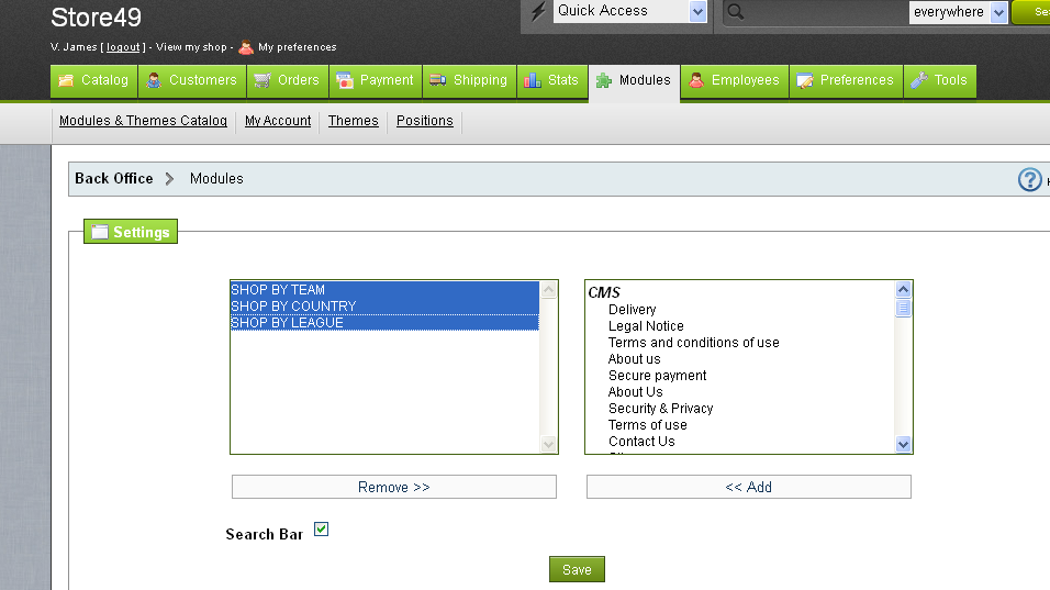 SHOP BY TEAM , SHOP BY COUNTRY ,SHOP BY LEAGUE as a top menus in my header. So i am trying to configure with Top horizontal menu v1.3 documentation and i have selected three categories in the left sidebar in the Top horizontal menu v1.3 module configure page and clicked the button "Add" but here after nothing will be happened.